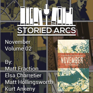 This week, Mike and Alex continue their exploration of November by Matt Fraction and Elsa Charretier with Volume 2 The Gun in The Puddle. The guys talk about how the various story threads begin to intersect in this volume, gently overlaying and crisscrossing and hinting at the bigger narrative at play. They chat a little about the pacing of the story and what storylines/characters are holding their interest at the moment, and discuss how when the decision to expand the book from 3 to 4 volumes was made may (or may not) have affected what ended up on the page. The guys also dive a little deeper into the paneling and coloring choices of Charretier and Hollingsworth, especially in the opening chapter of Volume 2.